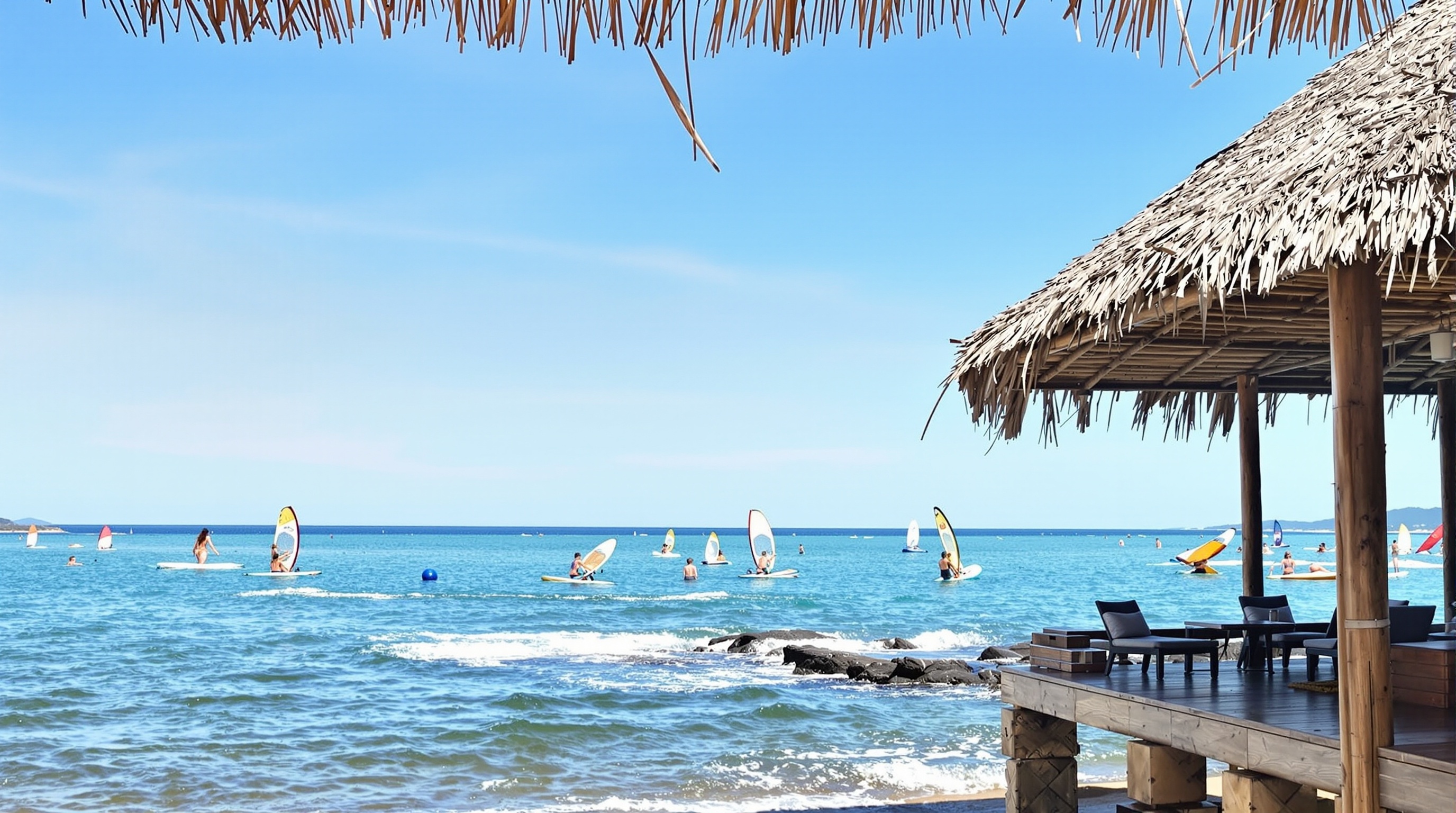 Alaçatı'nın rüzgarlı kıyılarında kurulan surf ve beach club için dayanıklı bambu çatı ve sazlık hasır uygulaması. Rüzgara ve tuz suyuna karşı özel işlem uygulandı.